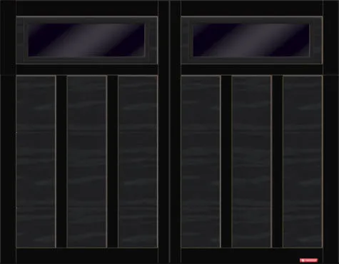 Townships Collection, Eastman E-13, 9’x 7’, Black door and overlays, windows with Black Satin glass